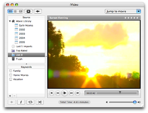 iVideo is the equivalent of iPhoto or iTunes for your video files. Movies are organized using playlists and thumbnails, and can be viewed directly within iVideo or using another application.
